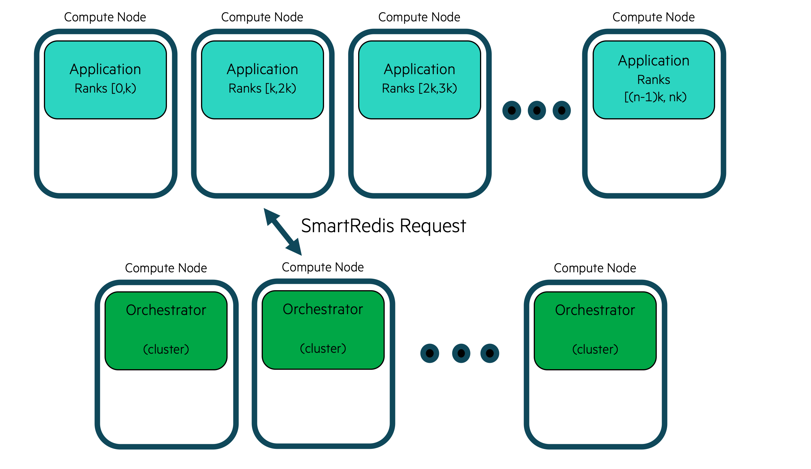 Users do not need to know how the data is stored in a clustered configuration and can address the cluster with the SmartRedis clients like a single block of memory using simple put/get semantics in SmartRedis. SmartRedis will ensure that data is evenly distributed amoungst all nodes in the cluster.